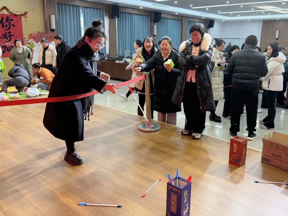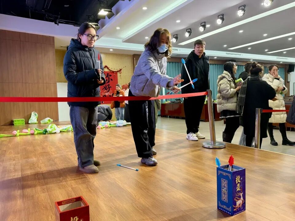 全体教职工欢聚一堂,在趣味十足的游戏中放松身心、增进情谊,共同迎接新年的到来。活动现场热闹非凡,处处洋溢着欢声笑语。本次活动设置了滚滚乐、投壶、套圈三项兼具趣味性与互动性的游戏,既考验技巧,又充满乐。